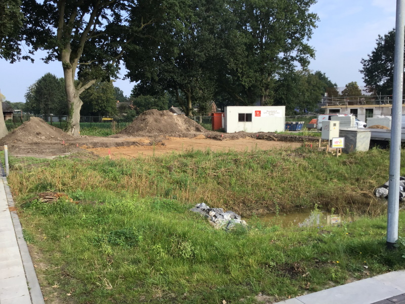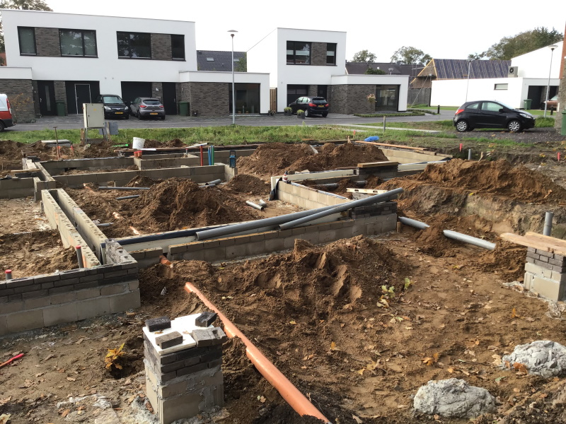 Inmiddels is de fundering al uitgegraven en gestort. Aankomende week zullen de metselaars beginnen met het peilwerk waarna het leidingwerk onder de vleor kan worden aangebracht en daarop volgend worden gestort.